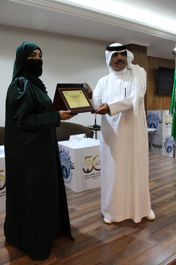 كما قدم النادي الأدبي الثقافي للفنانة التشكيلية عبير مصيري درعًا تقديريًا لجهودها المميزة، حيث قام بتسليمه لها الفنان خير الله زربان نيابة عن رئيس النادي. وفي خطوة تهدف لدعم الحركة الفنية ,أعلن النادي عن مبادرة جديدة تتمثل في جعل المساحة الخاصة بالفن التشكيلي داخل مقره متاحة مجانًا لجميع الفنانين لعرض أعمالهم وإقامة معارضهم، مما يعزز من دعم الفنانين والمبدعين في المجتمع”.