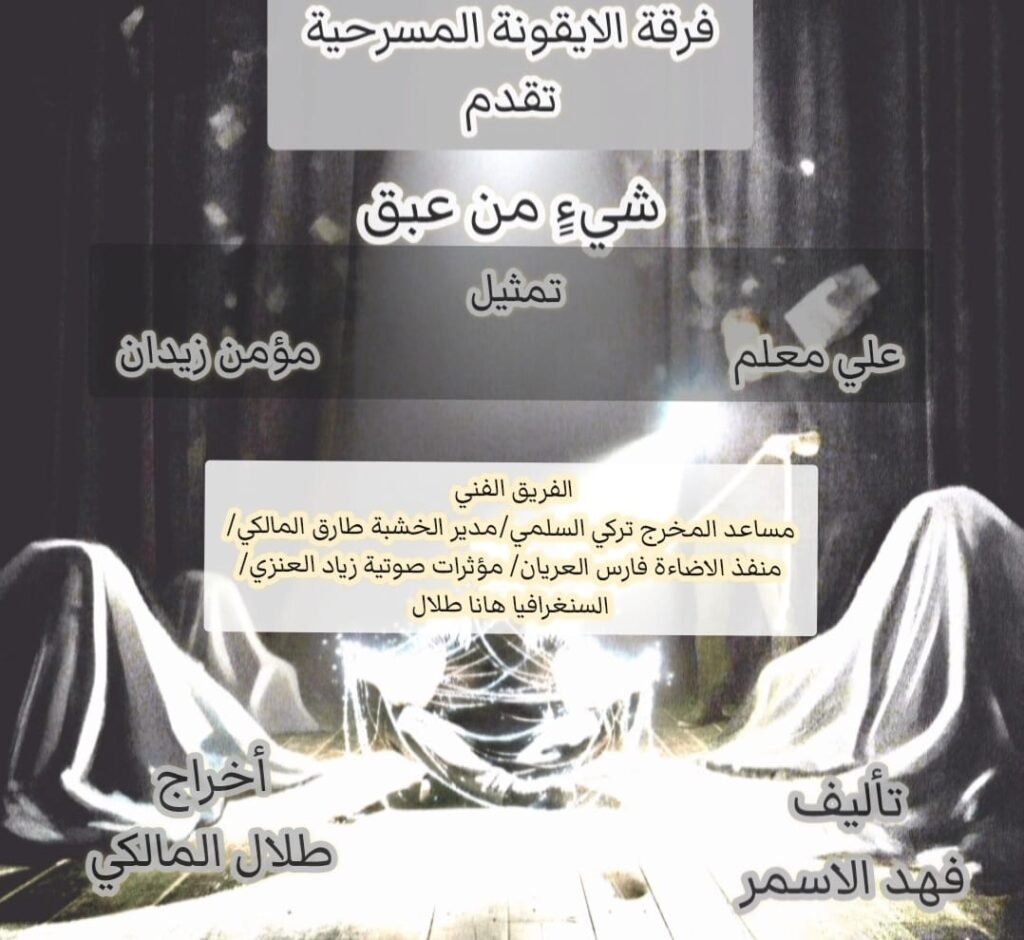 يستعد المخرج طلال علي المالكي للمشاركة في مهرجان الديودراما المسرحي , و الذي سيقام في مدينة الطائف في الفترة من ١٨ الى ٢٢ نوفمبر القادم بمسرحية (شيءً من عبق) , من تاليف الكاتب فهد الاسمر , و إخراجه .