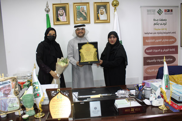 بدوره شكر الأستاذ نذير ياوز الإعلامية عفاف عالم – رئيسة تحرير مجلة نجمة السعودية – والاستاذة رماز تركستاني – رئيسة نادي مون آرت – , واثنى على جهودهم المميزة في اثراء المشهد الثقافي والفني , وتعاونهم الناجح الذي لاقى اشادة من المجتمع المهني .