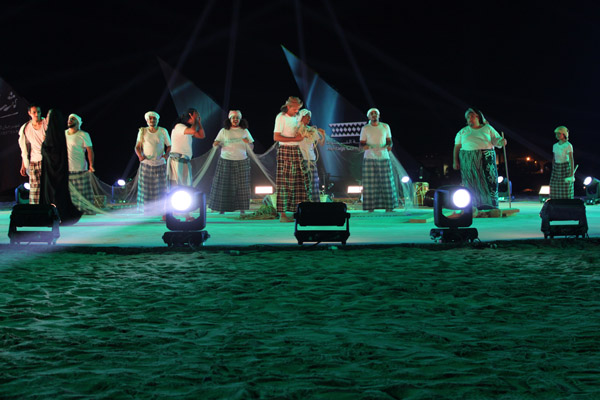 “شراع” مسرحية تفاعلية تتحدث عن البحر وغدره وكيف تعاون سكان الشاطئ من البحارة لمساعدة صديقهم “سالم” الذي فقد في البحر واعادوه الى حضن امه