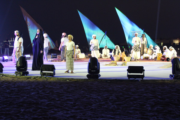 اطلق المخرج قاسم القضاة على العرض المسرحي التفاعلي عنوان “شراع”، وحرص على دمج هذا العرض بعرض تراثي راقص، بالتعاون مع مجموعة “العربي للفنون” ليكون مناسباً ومرتبطاً بأحداث مهرجان السفن الخشبية , وقد أشاد الحضور من صناع المسرح والإعلام بذلك الدمج بين الفن المسرحي والتراثي الذي كان ناجحاً فكرة واخراجاً .